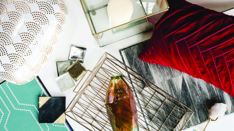 Change will be easy this year as new trends make their way into shops and creative centers. The forecast for mixed metallics, geometric patterns, velvet, and rich jewel tones is looking bright as these elements are beginning to appear all around us.