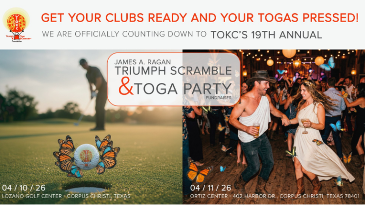This April, the Triumph Over Kid Cancer Foundation (TOKC) invites the Coastal Bend community and beyond to be part of something extraordinary: the 19th Annual James A. Ragan Triumph Scramble & Toga Party Weekend — a two-day experience where compassion meets celebration, and every moment helps change a child’s life.
